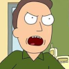 Jerry | "Well," Jerry frowned at her, "that attitude is exactly why we're out here. You guys wouldn't last two seconds on your own. You're only happy when you're penned in or drugged up, like some kinda...chicken...or...lemur...Hey!" It was then that he noticed that Summer and Morty weren't paying attention to him anymore, and for a very particular reason. "I told you kids! No phones!" |